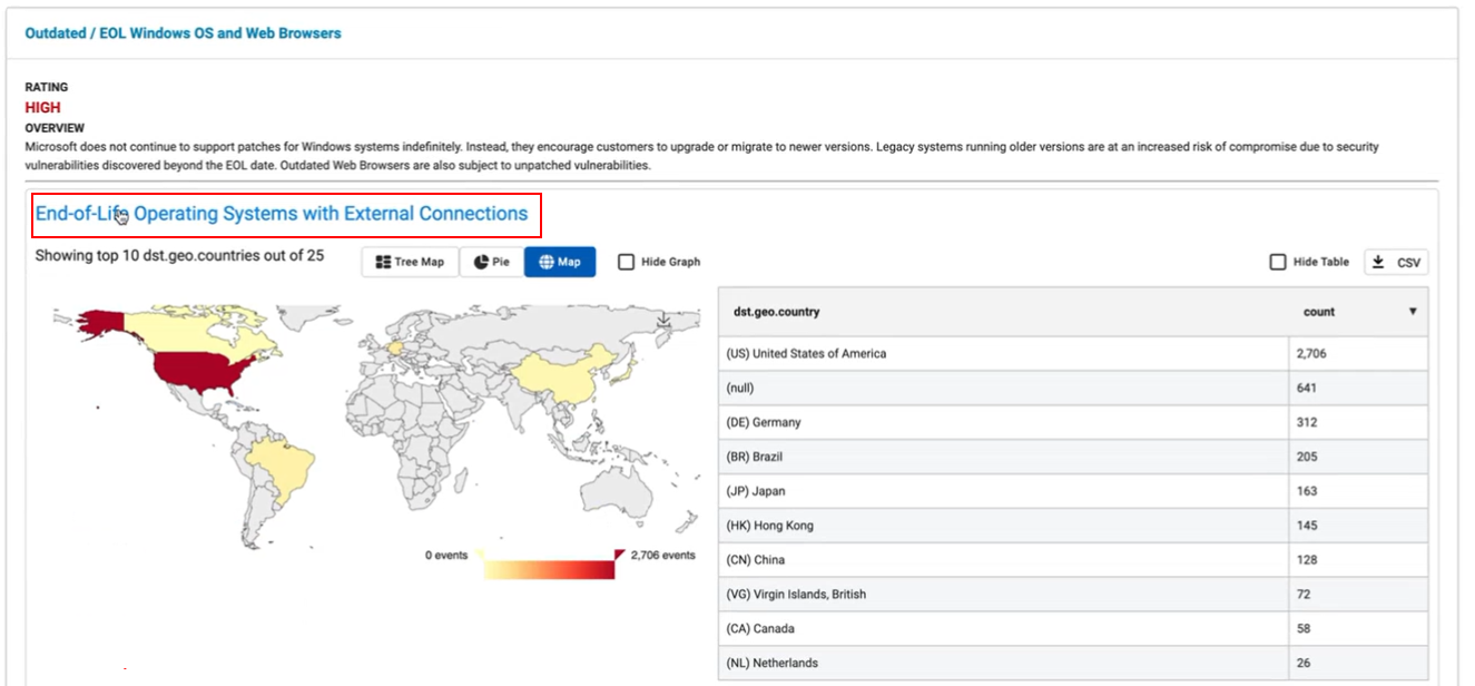 If there are zero hosts for a finding, the Execute Summary will display No Answer (N/A) instead of High. You can also click a heading in the Findings column to navigate to the corresponding section in the report.