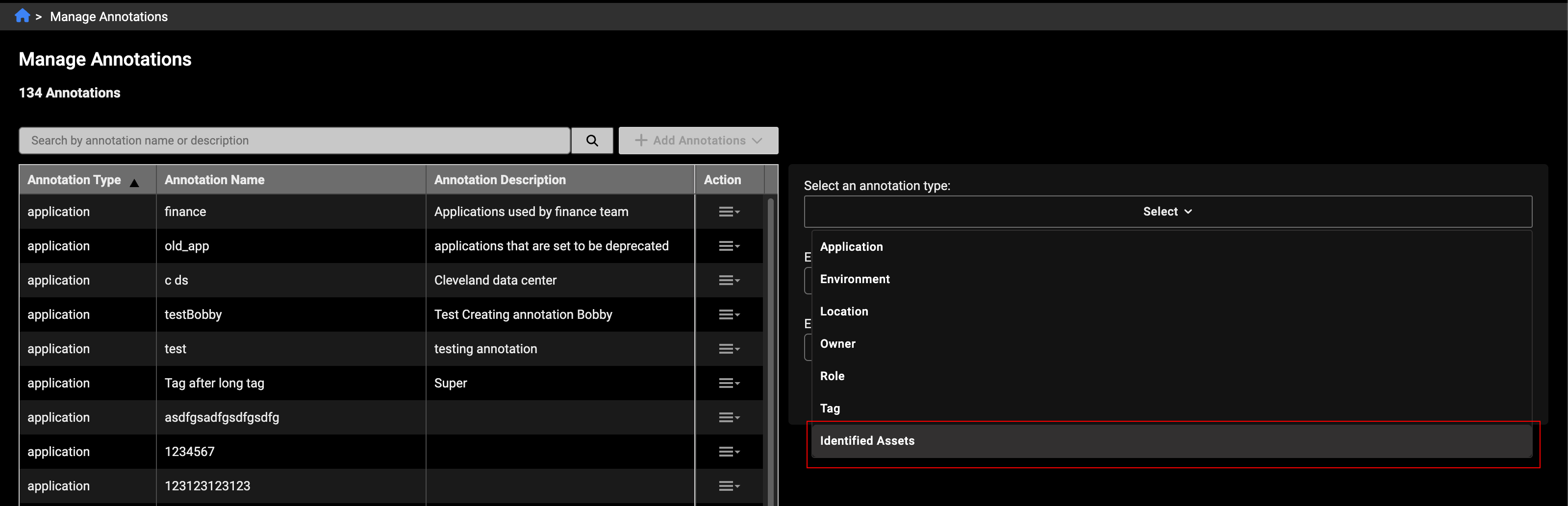 A new annotation type, Identified Assets, has been added for FortiGuard ATR. This allows assets to be tagged with priority levels—high, moderate, or low risk—which are then visible in the events and detections tables.