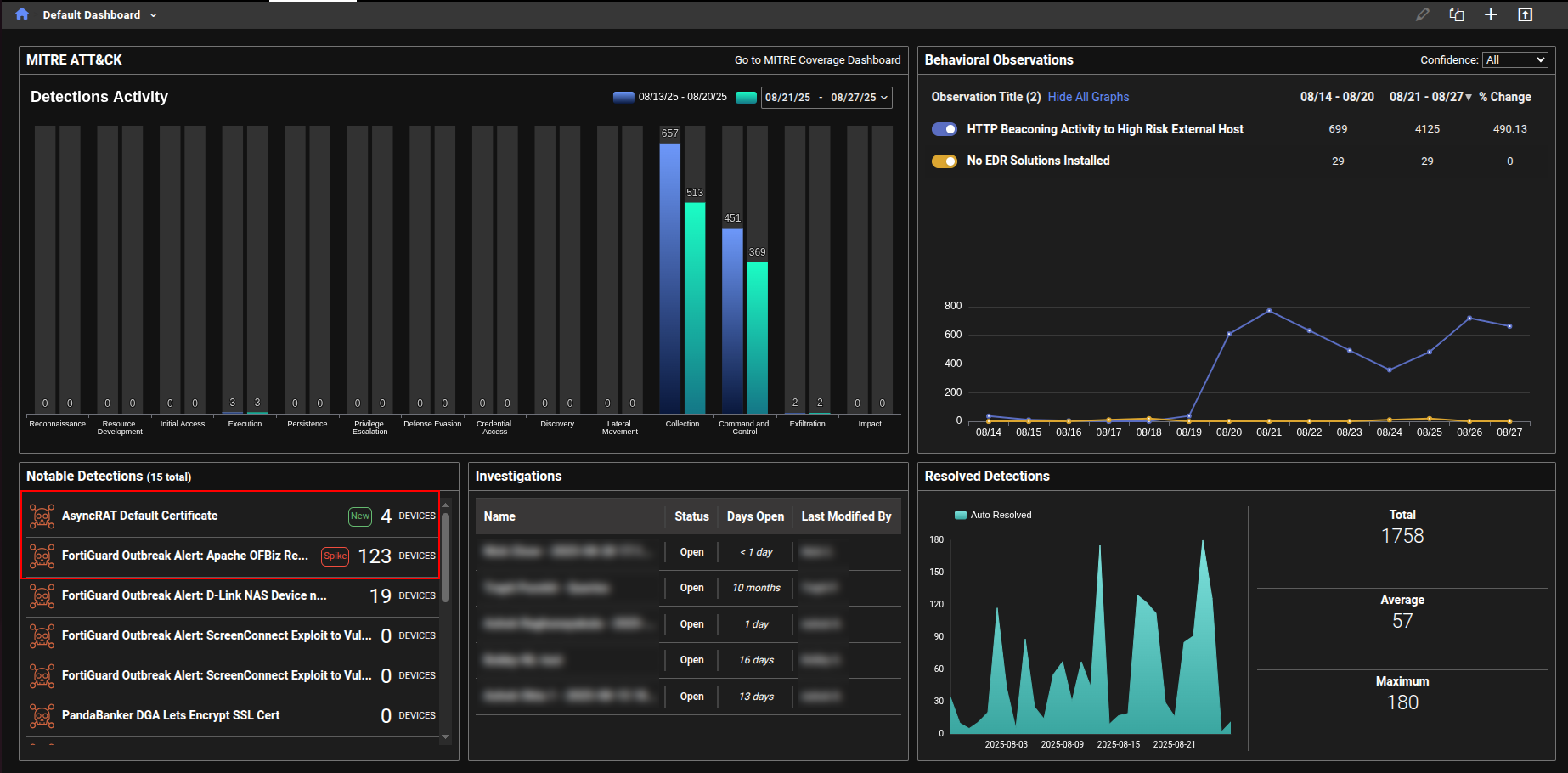 We have added labels to the Notable Detections table in the Dashboard to highlight new detections and spikes in detection activity.