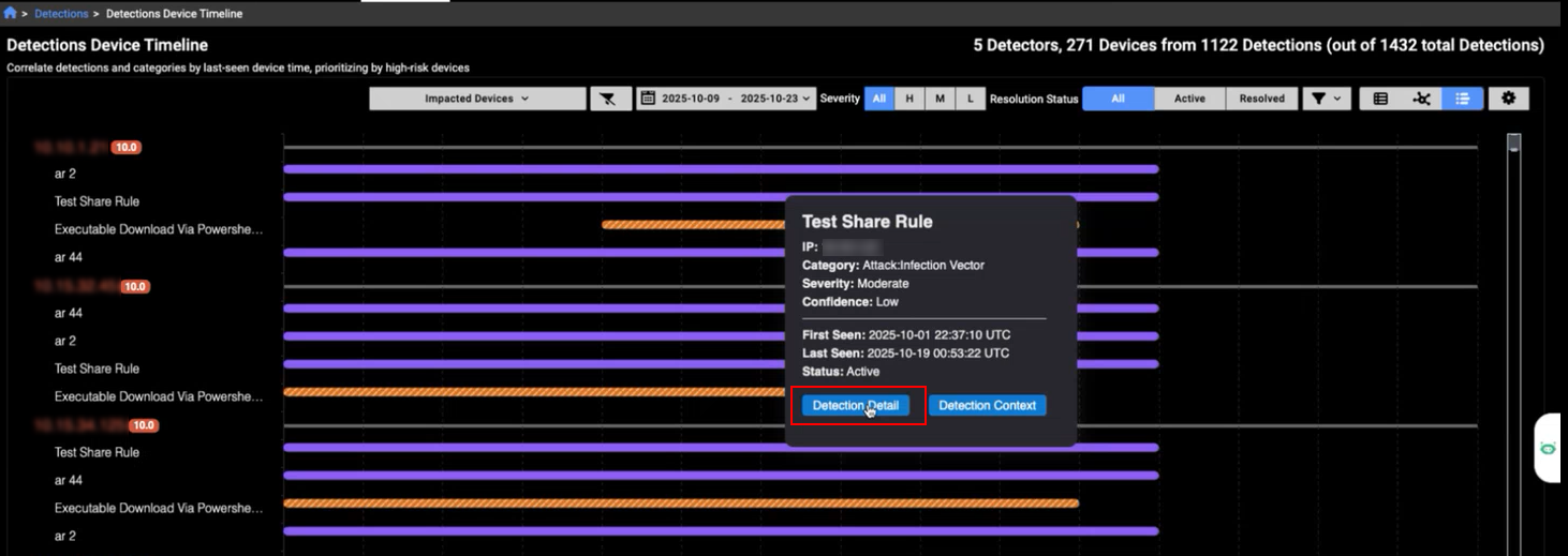 The Detection Device Timeline now features a cleaner design for improved readability. A new Detection Detail button has been added to the tooltip, allowing you to quickly navigate to the detection details page for a selected detector.