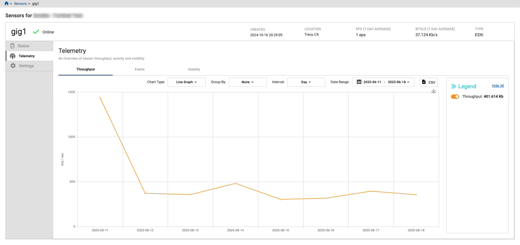You can now download the data in the Sensors detail page as a CSV file. The CSV file will download everything in the graph. You can use the legend to select the sensor data that you want to download.