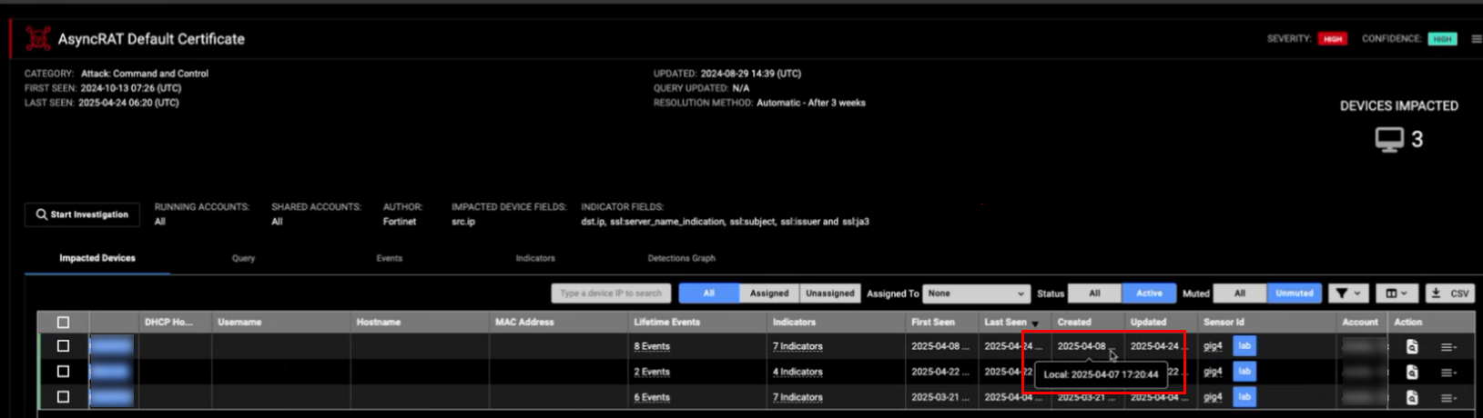 You can use the Detection Context page to view the device details, mute or exclude the device.