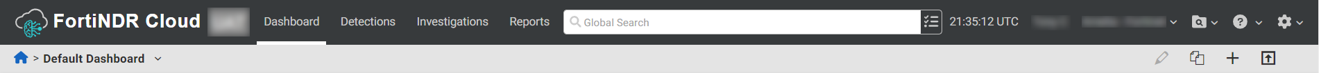 This is the landing page for the FortiNDR Cloud portal and provides high-level summary information. For more information, see Dashboard.