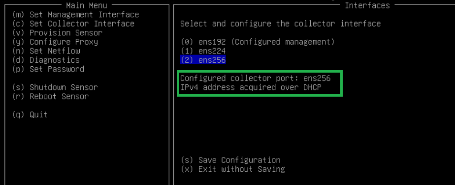 - From the config menu, select Set Collector Interface (Press c).