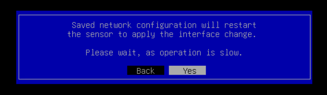 - Select Save Configuration. A confirmation dialog box will appear, requesting a sensor restart to apply the interface changes. Select Yes to proceed with the restart.
