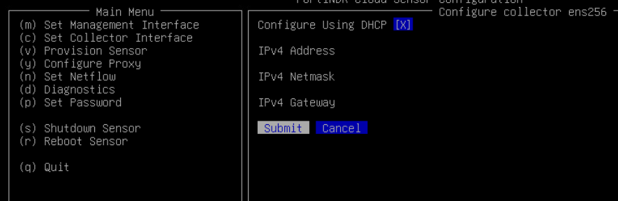 - If DHCP is available on the collector subnet, choose Configure Using DHCP and select Submit.