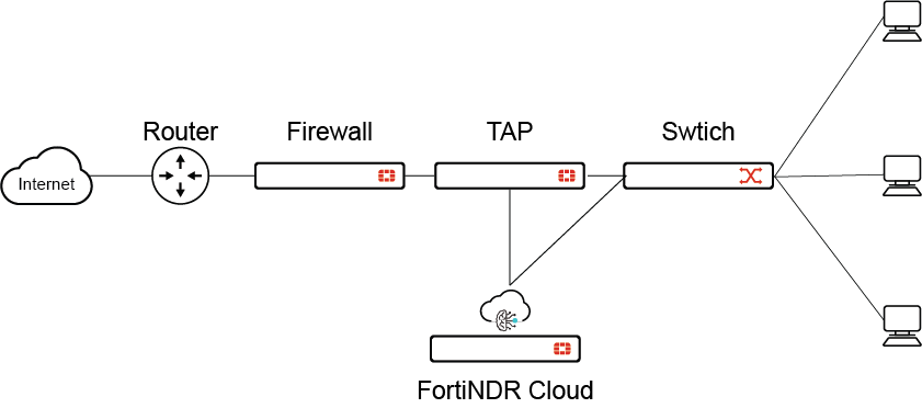 For many organizations, a network aggregator is configured to monitor traffic at several key locations within the network. FortiNDR Cloud sensors can deploy off a network aggregator if one is available within the network. Some network aggregation appliances also have the ability to decrypt network traffic, which can greatly increase the fidelity and visibility of the FortiNDR Cloud sensor.