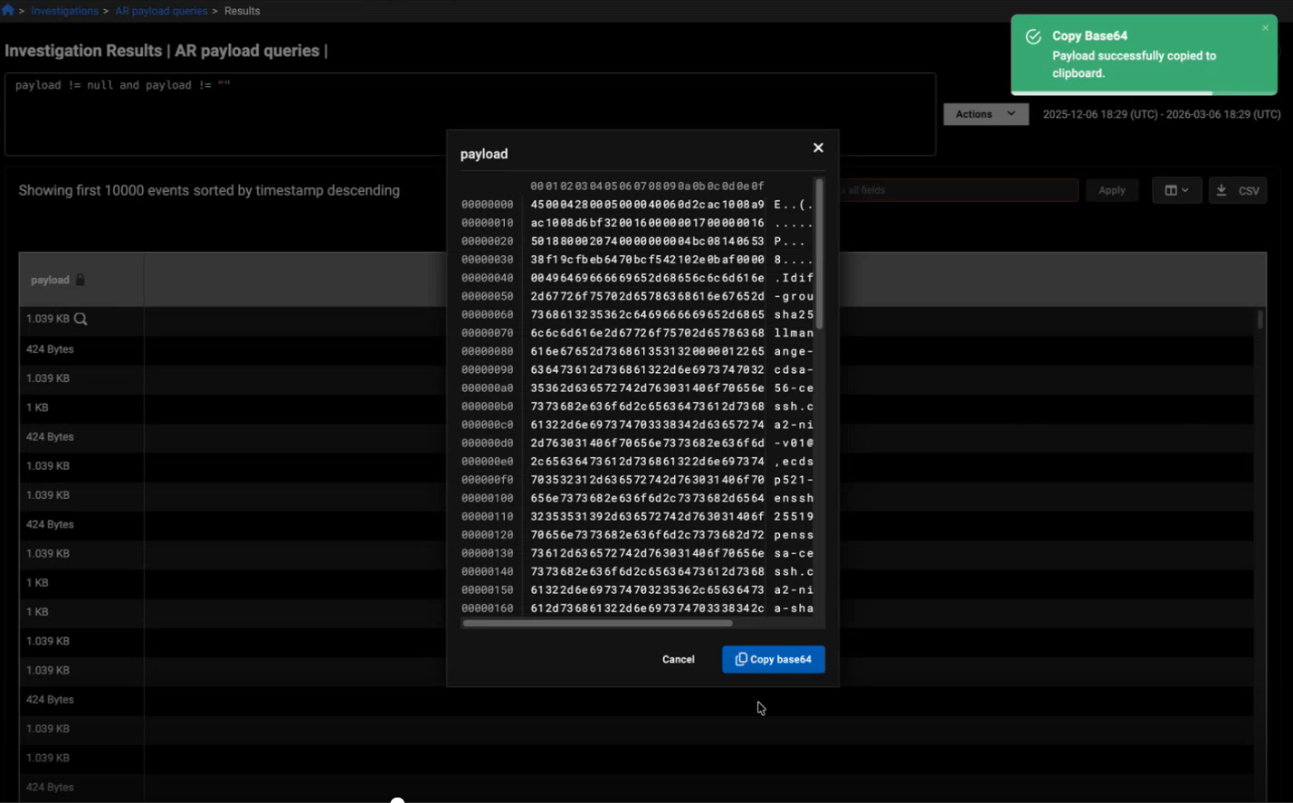 A new Payload field has also been added to the investigation results.