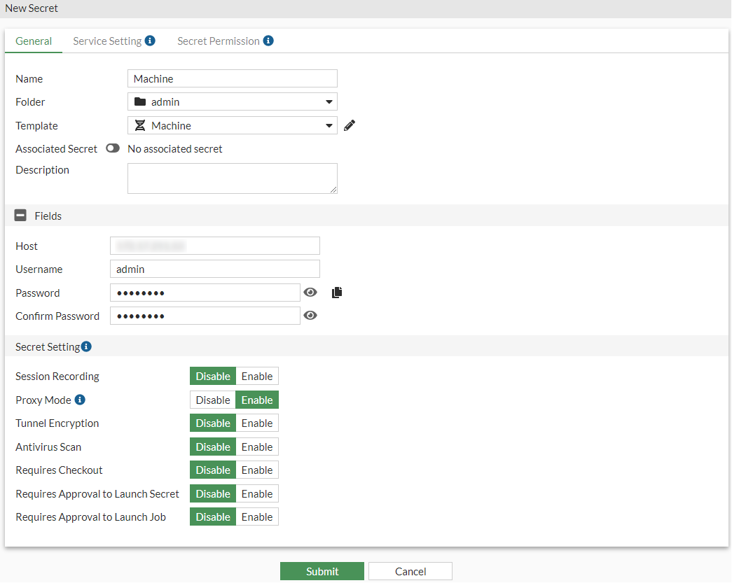 1. In the Host field, enter the IP address or the FQDN of the machine.