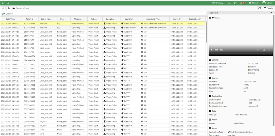 - Go to Log & Report > Secret > Secret Video and double-click the secret video entry in the list.