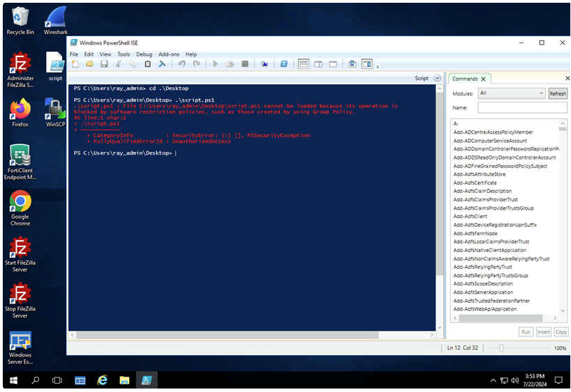 - Verify the Windows application filter functionality by executing the blocked executables and scripts: