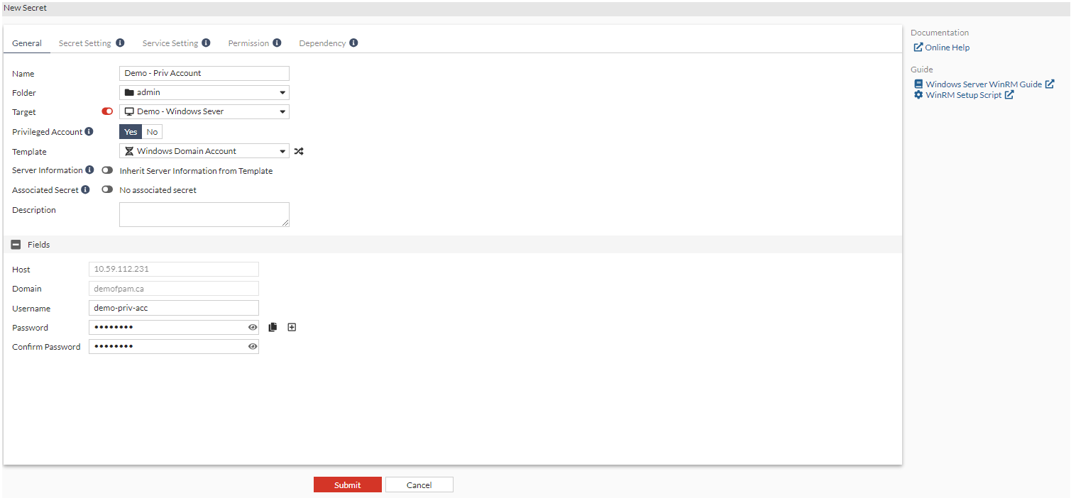 Creating a privileged account secret