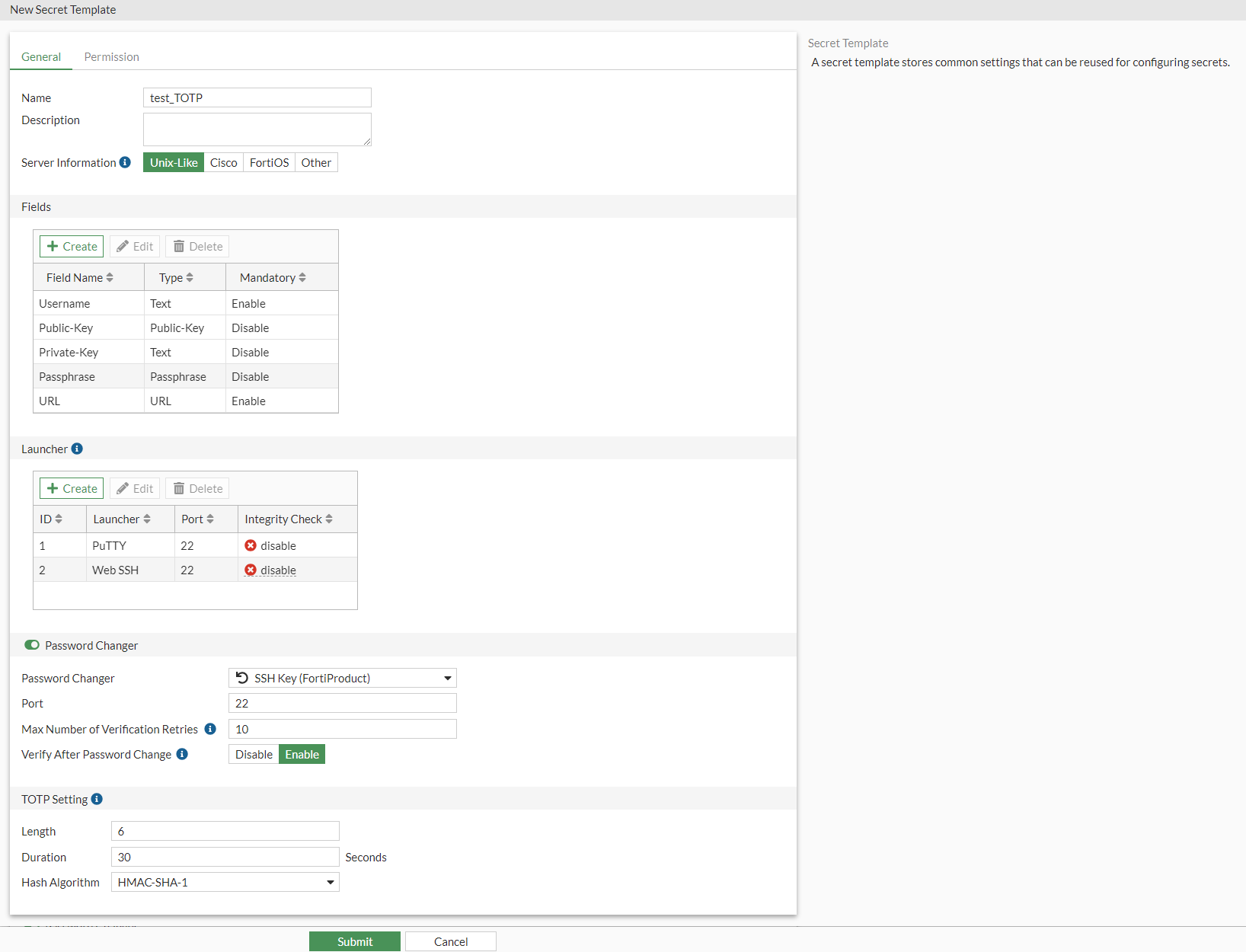 Generally, you should avoid changing secret template TOTP settings, if a target server requires special TOTP setting, you can configure this from the TOTP Setting pane when creating or editing the secret.