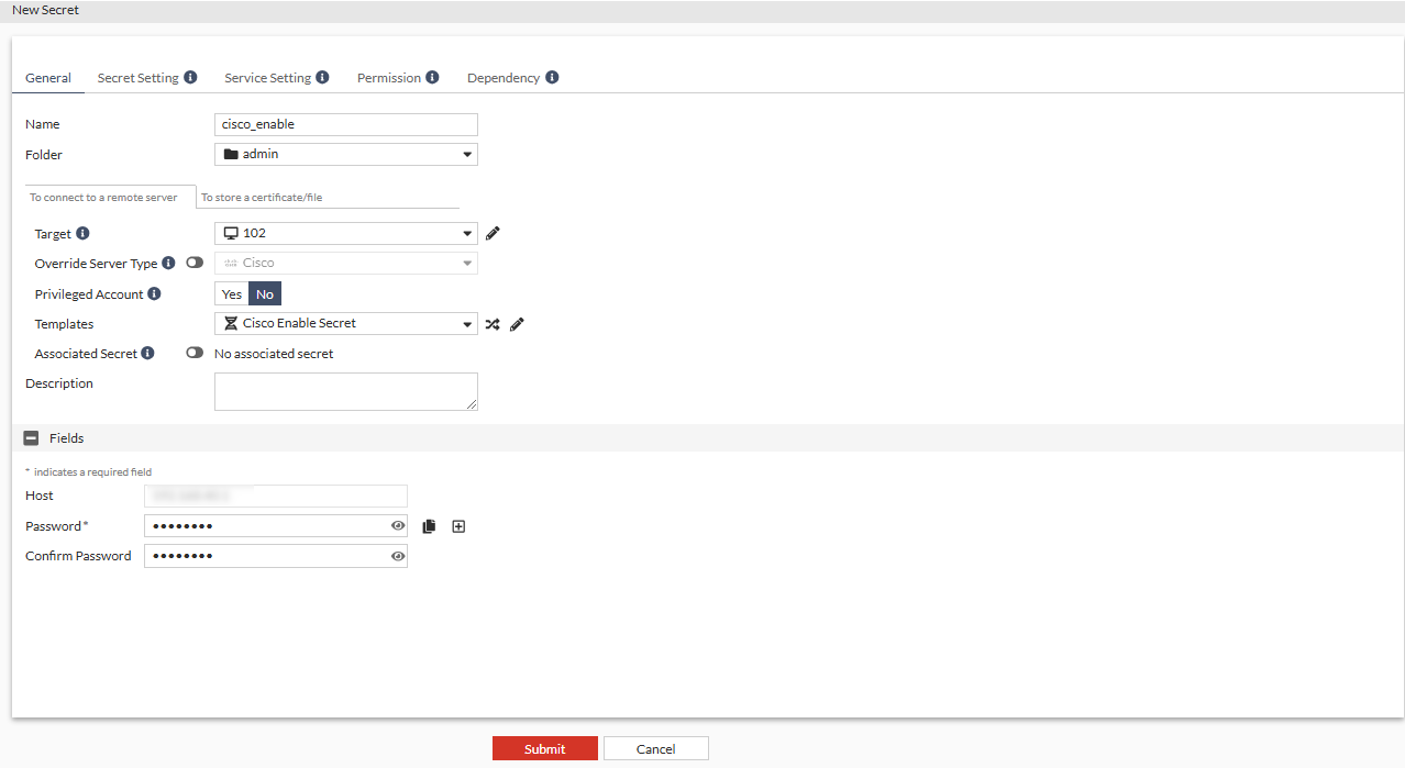 - In the Templates dropdown, select Cisco Enable Secret default template.