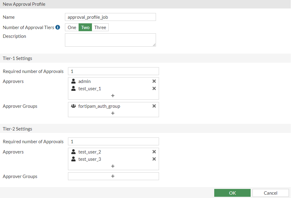 In this example, Tier-2 Settings require at least 1 approval from the tier consisting of two users.