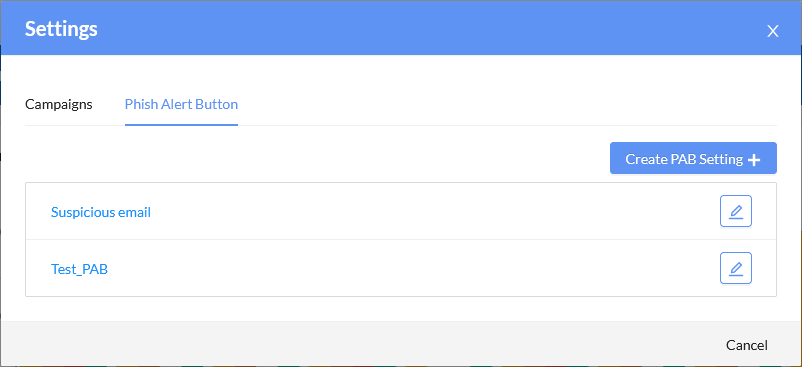 - Click Create PAB Setting + to configure the alert button settings, and then click Submit.