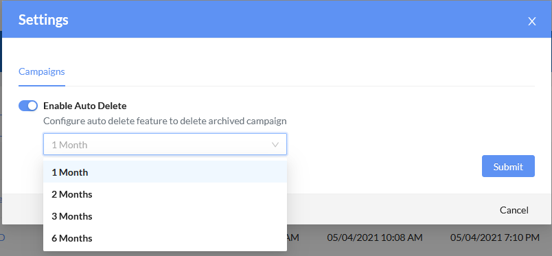 Schedule archived campaigns to be automatically deleted at monthly intervals.