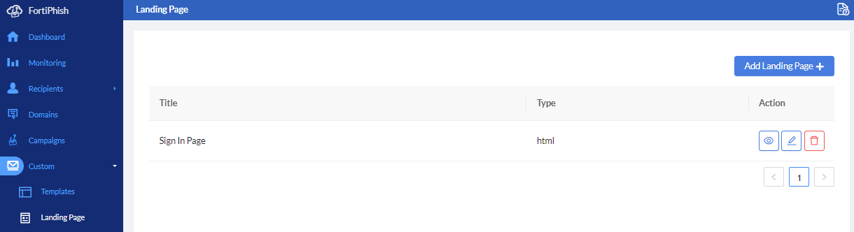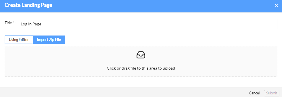 - Click Submit. The landing page is imported and added to the Landing Page list.