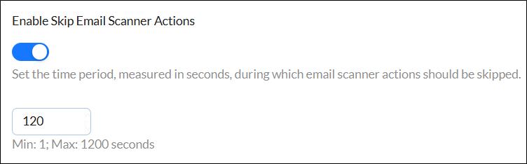 2. Enable the Enable Skip Email Scanner Actions toggle.