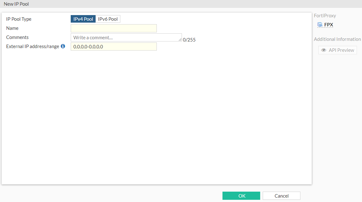Select Create New to open the New IP Pool window.