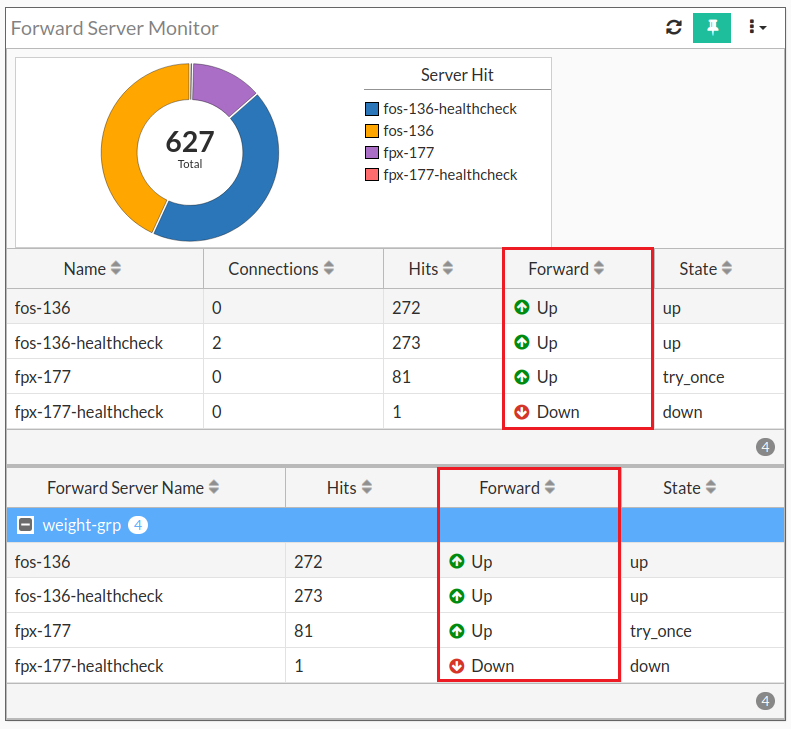 In the Forward Server Monitor widget, the Status column is now renamed Forward.