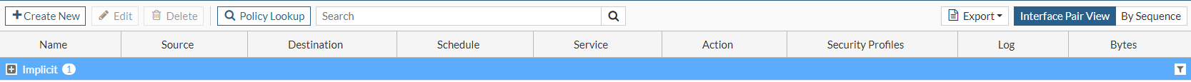 Firewall policy lookup is based on the Source_interfaces/Protocol/Source_Address/Destination_Address that matches the source-port and dst-port of the protocol. Use this tool to find out which policy matches specific traffic from a number of policies. After completing the lookup, the matching firewall policy is highlighted on the policy list page.