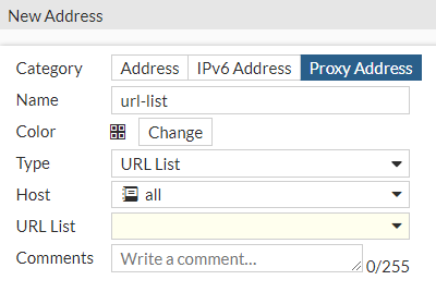 - Create a URL list address by referencing the web filter URL list: