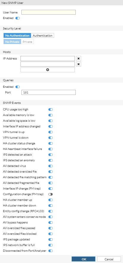 Configure the following settings in the New SNMP User page or Edit SNMP User page and click OK: