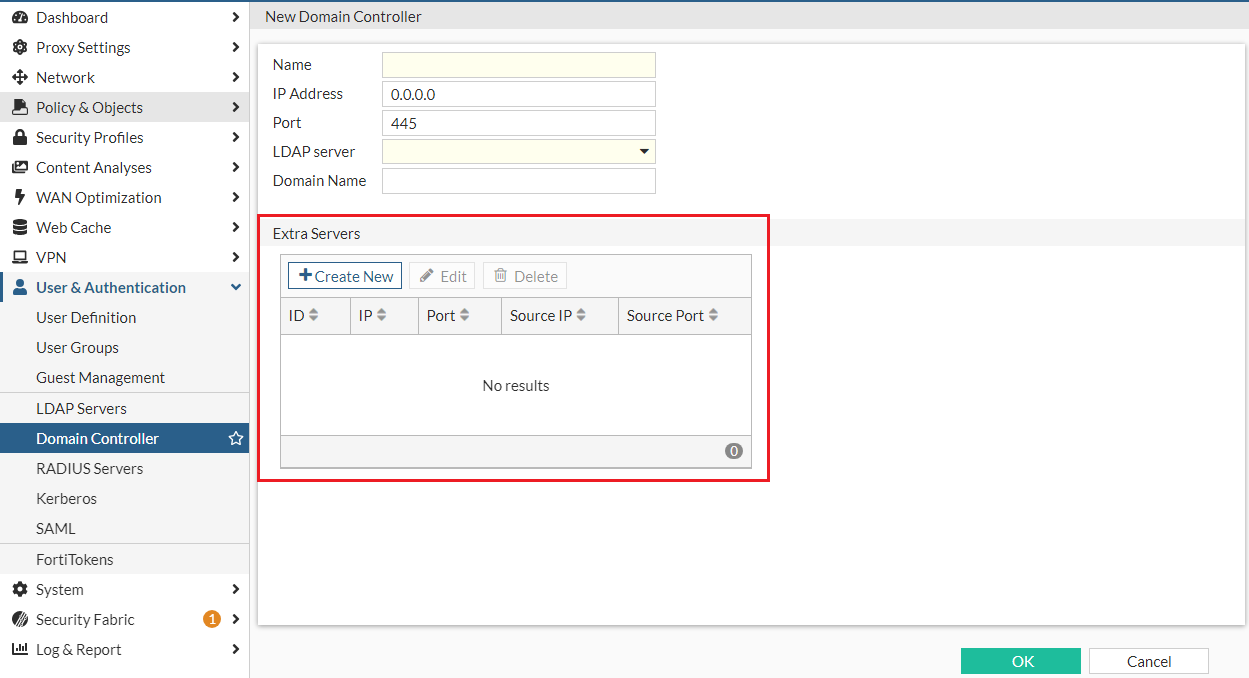 Under User & Authentication > Domain Controller, when you create or edit a domain controller, you can create extra servers in the new Extra Servers window.