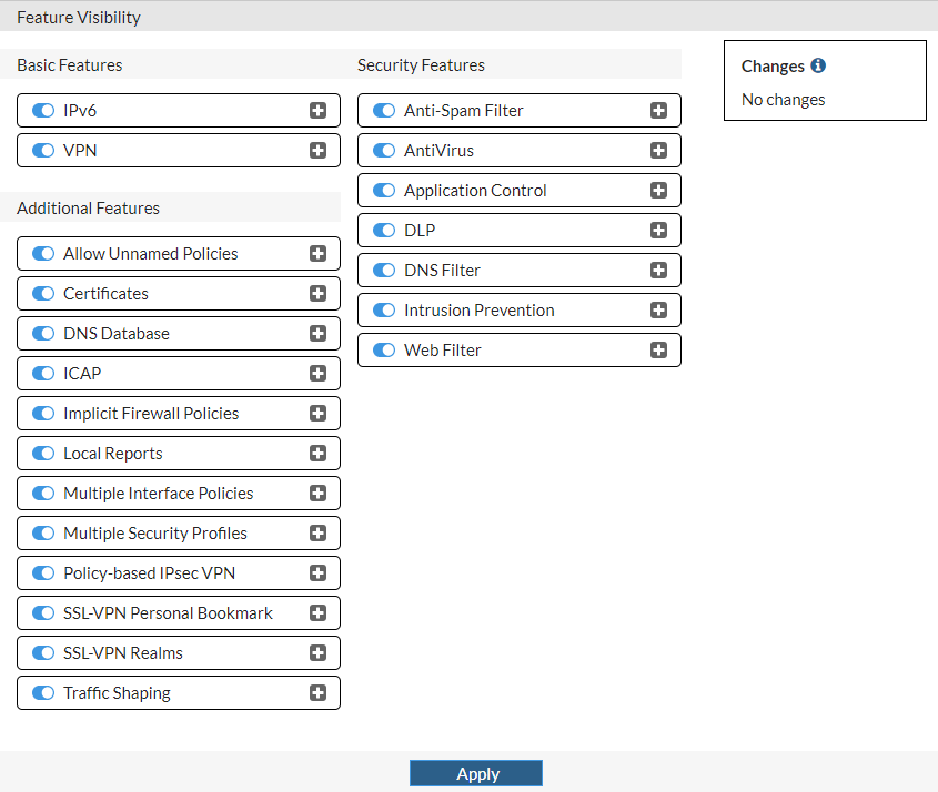 Allows you to create more than one antivirus profile, web filter profile, application sensor, IPS sensor, antispam profile, DLP profile, VoIP profile (if enabled), and ICAP profile (if enabled). You can also select the individual UTM profiles in security policies. Enable multiple UTM profiles if you need different levels of UTM protection for different traffic streams.