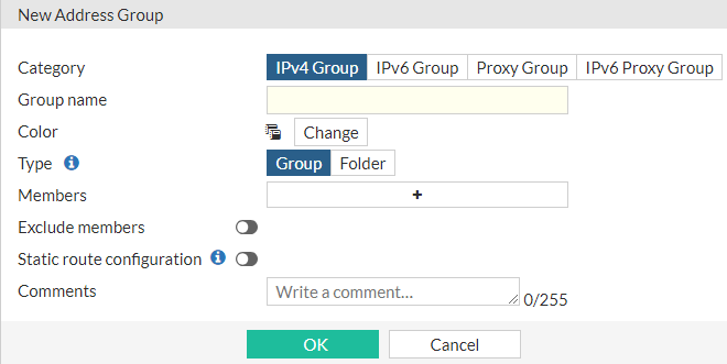 Select Create New > Address Group to open the New Address Group window.