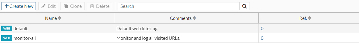 | Create New | Create a web filter profile. See Create or edit a web filter profile. |