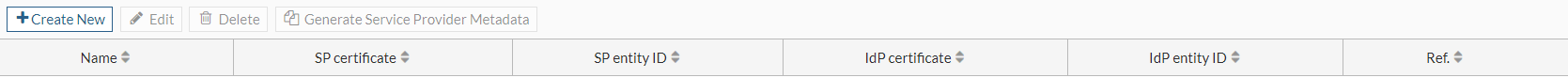 | Create New | Create a SAML server. See Create or edit a SAML server. |