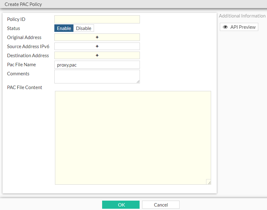 Configure the following settings in the Create PAC Policy window or the Edit PAC Policy window and then click OK: