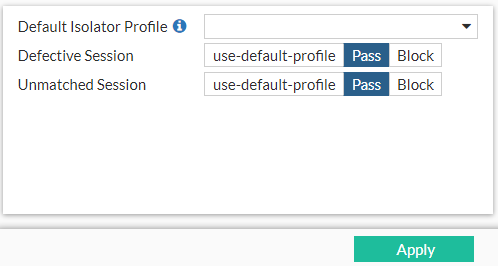 Select a profile that will used when no policy is matched. You can select an existing isolator profile from the list or create a new one. By default, no profile is selected. |
