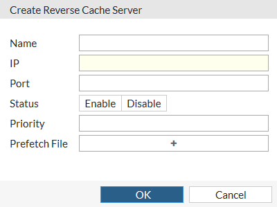 3. Click OK to create the reverse cache server.