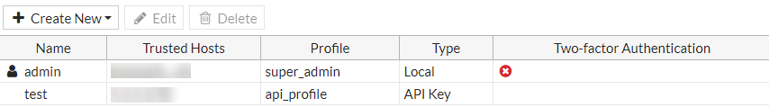 Two-factor authentication (2FA) status. When enabled, the administrator must supply another factor in addition to the password during authentication. FortiProxy supports the following 2FA options: