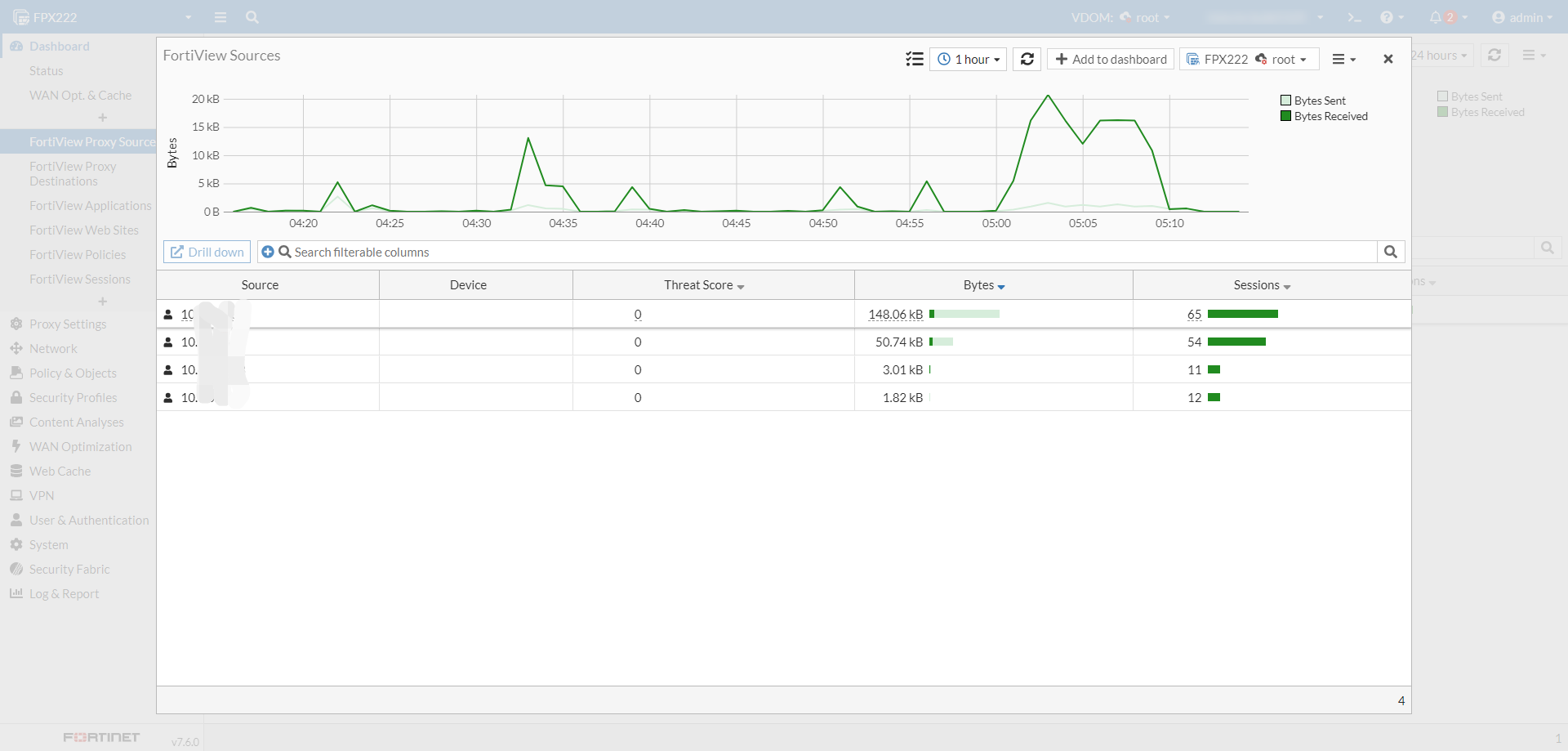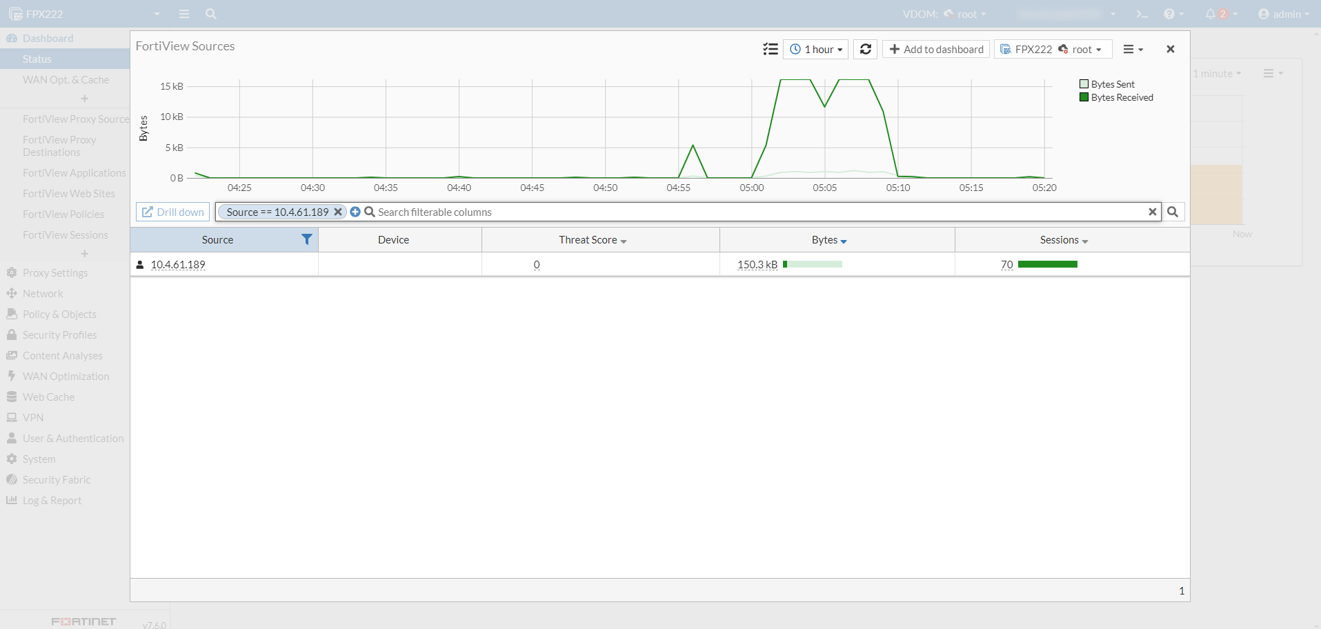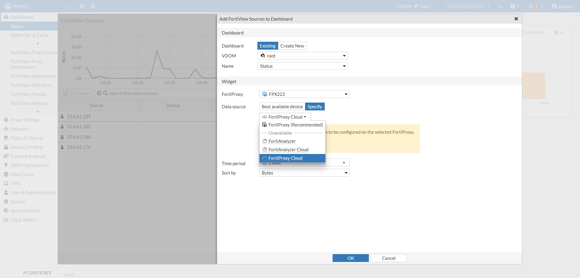 On a standalone FortiProxy, the FortiView data source can be selected from the drop down.