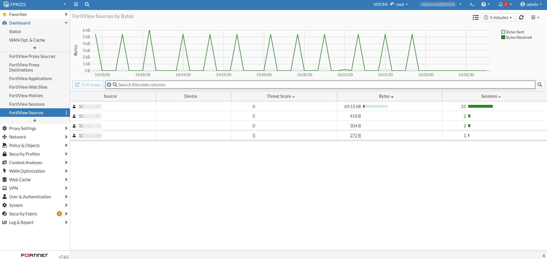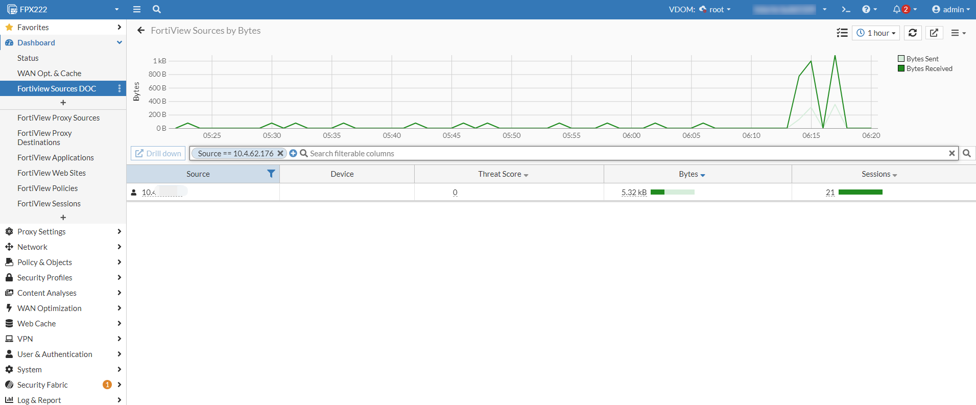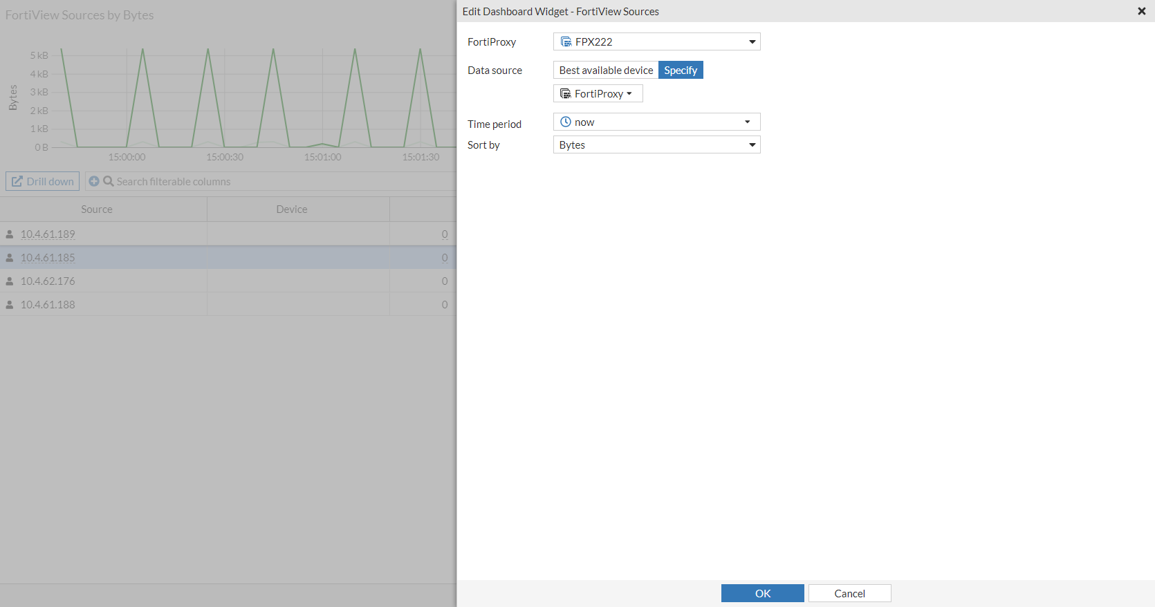 On a standalone FortiProxy, the FortiView data source can be selected from the drop down.