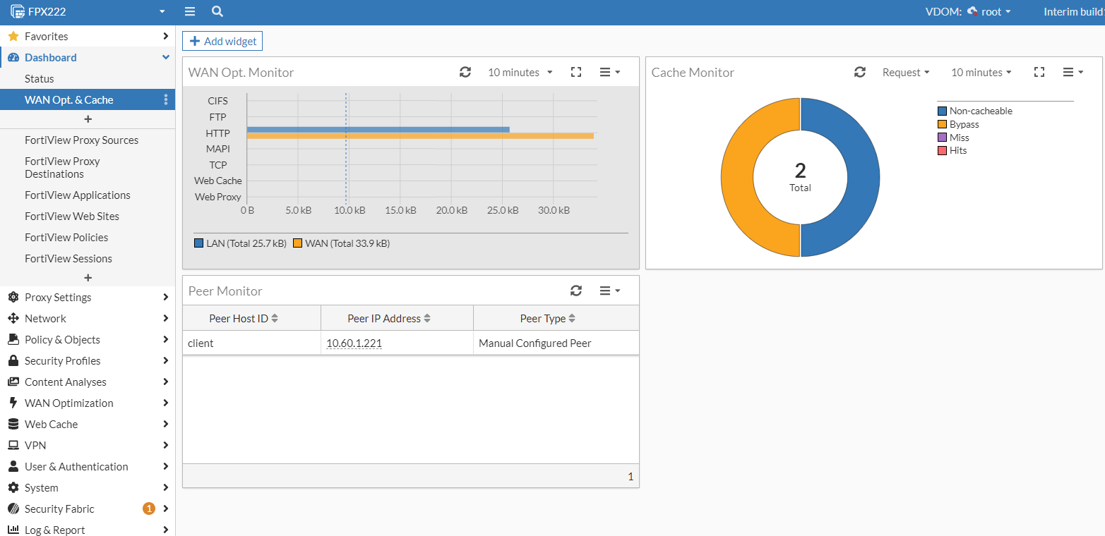 WAN Opt. & Cache dashboard