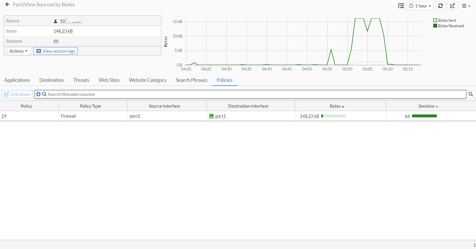 Select a tab, for example Policies, and drill down again to apply a second level filter (listed in the summary). That tab will be removed for the available tabs. Click the X to remove the filter and show that tab again.