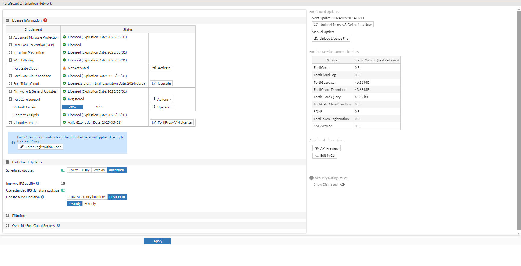 FortiGuard license information