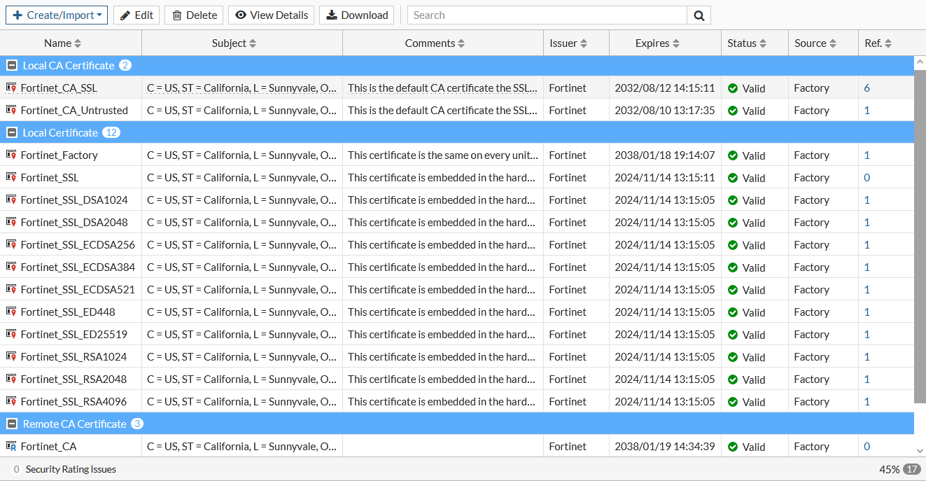 To see a list of certificates that have been imported, go to System > Certificates.