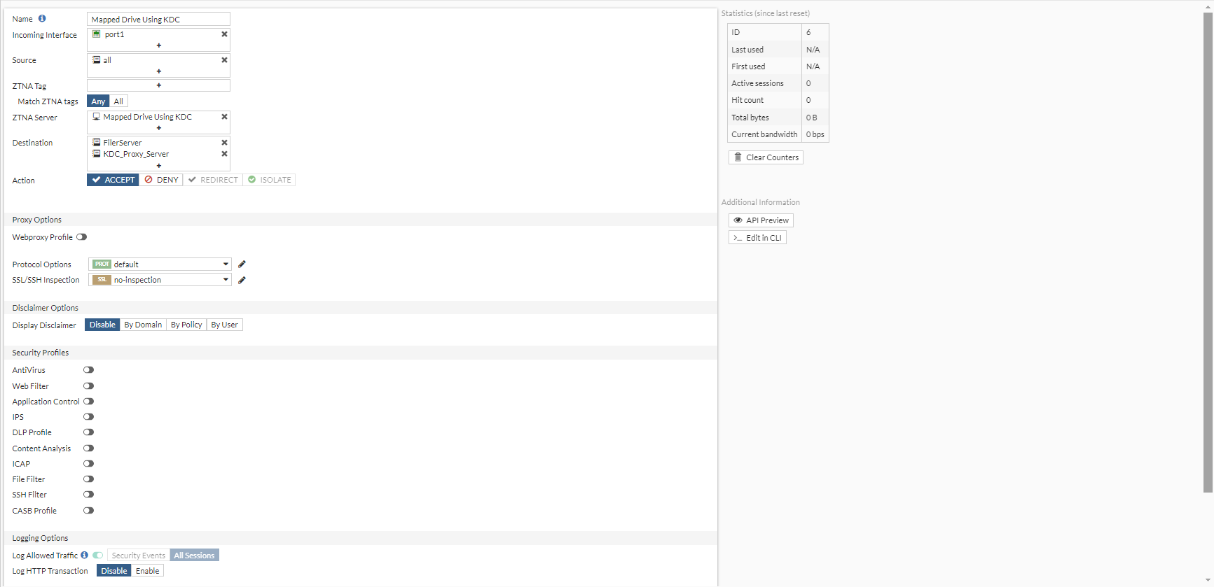 A ZTNA server and a proxy policy are required to verify and forward the incoming requests on port 10445 to the file server on port 445 as well as to the KDC proxy server on port 443.