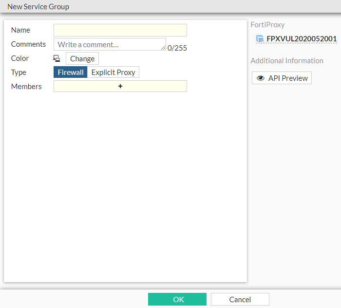 Configure the following settings in the New Service Group window or the Edit Service Group window and then click OK: