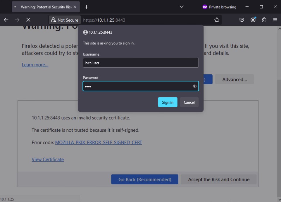 Once the certificate verification passes, an authentication dialog box is displayed.
