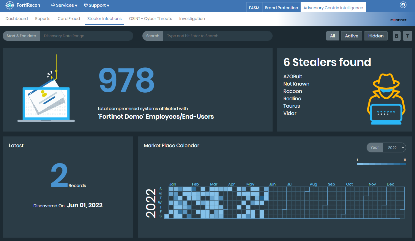 - Go to Adversary Centric Intelligence > Stealer Infections. The Stealer Infections page is displayed.