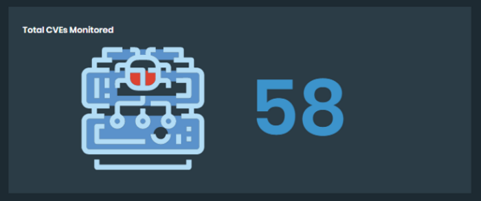 Total CVEs Monitored: This tile displays the total count of monitored CVEs.