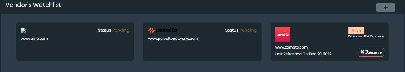 • Attack Surface Exposure: Provides an overview of the vendor company's assets and current security hygiene to assess the estimated risk exposure.
