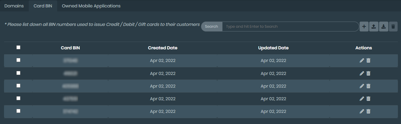 From the Profile Settings > Seeds > Card BIN tab, you can: